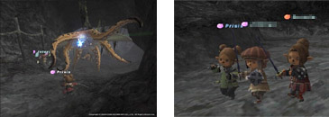 まずはNMが沸く時間を調べるために海蛇の洞窟へ。到着した時はもう人でいっぱいな状態w。なんと私達がつく直前に他の人が倒しちゃったのです。ネットを調べたところ、6~12時間後から抽選が始まるらしく、6時間後集まる事になりました。そしてNMを沸かせるため、雑魚を倒し始めたんですが・・・まったく沸きません!!抽選の6時間が過ぎてから1時間・・2時間がたっても沸いてくれません!途中LSリーダーのNさんがお手伝いに来てくれたのにも沸かず、4時間・・5時間・・6時間がすぎJさんがちょっとコンビニへ行ったその瞬間・・・「Charybdis様登場!」